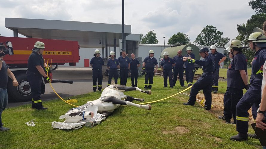 Der Kreisfeuerwehrverband hat erstmals ein Seminar Großtierrettung angeboten. Für dieses Seminar konnte ein externer Trainer – welcher zertifzierter Großtierretter ist – gewonnen werden.