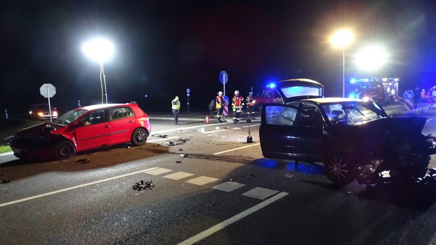 Durch den Zusammenstoß im Einmündungsbereich wurden die beiden Fahrer und zwei 18 und 50 Jahre alte Mitfahrer leicht verletzt. Die 17-jährige Beifahrerin des Unfallverursachers wurde schwer verletzt.