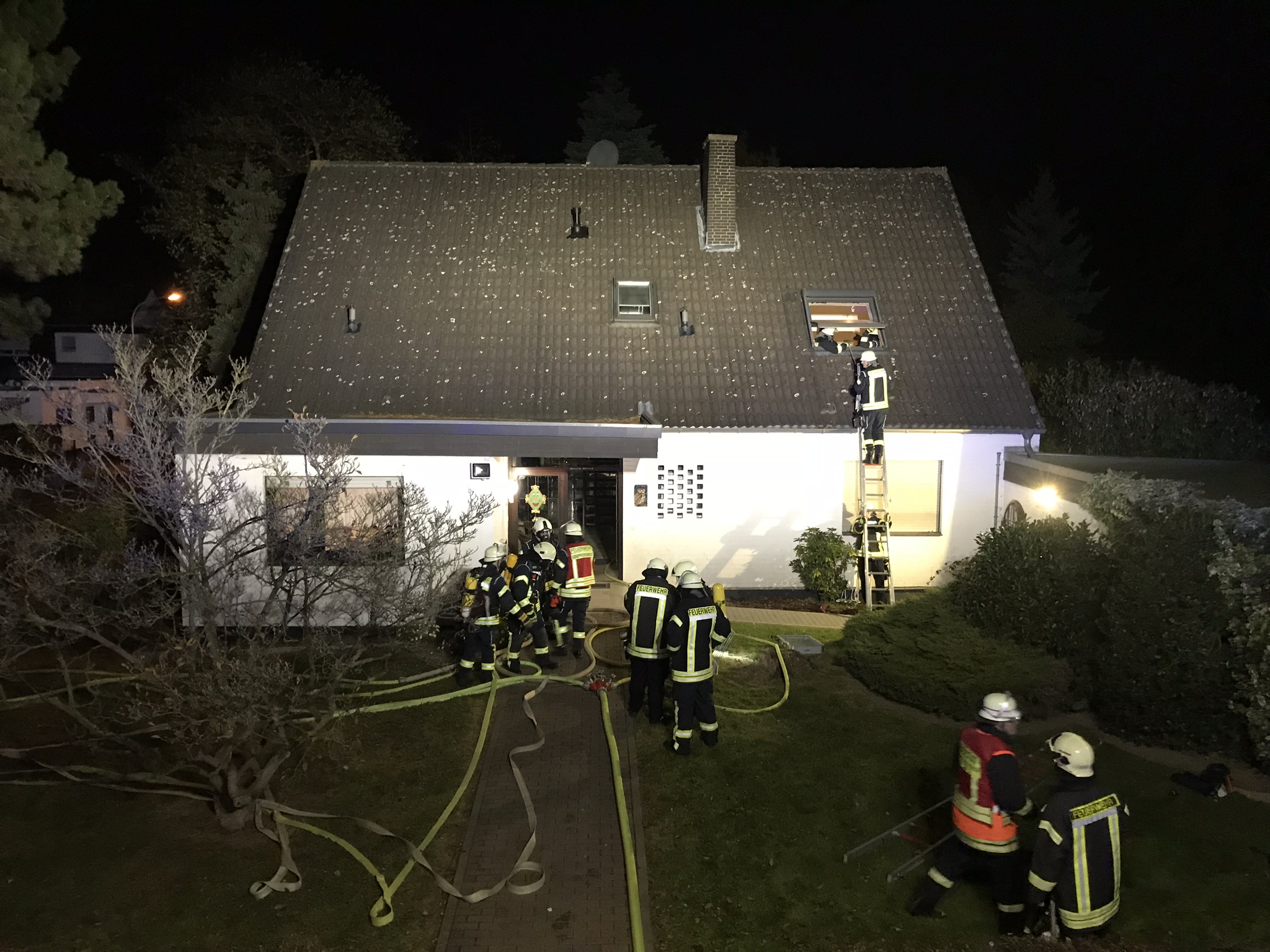Zunächst führten die Kräfte der Feuerwehr eine Menschenrettung durch. Hierbei lag das Augenmerk auch darauf, den Bewohnern die „Angst“ vor den vorrückenden Feuerwehr-Kräften und den Fluchthauben zu nehmen.